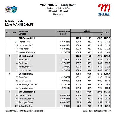 Die Ergebnisliste des Jubiläumsschießens: