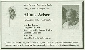 Wir trauern um unser Mitglied Alfons Zeiser