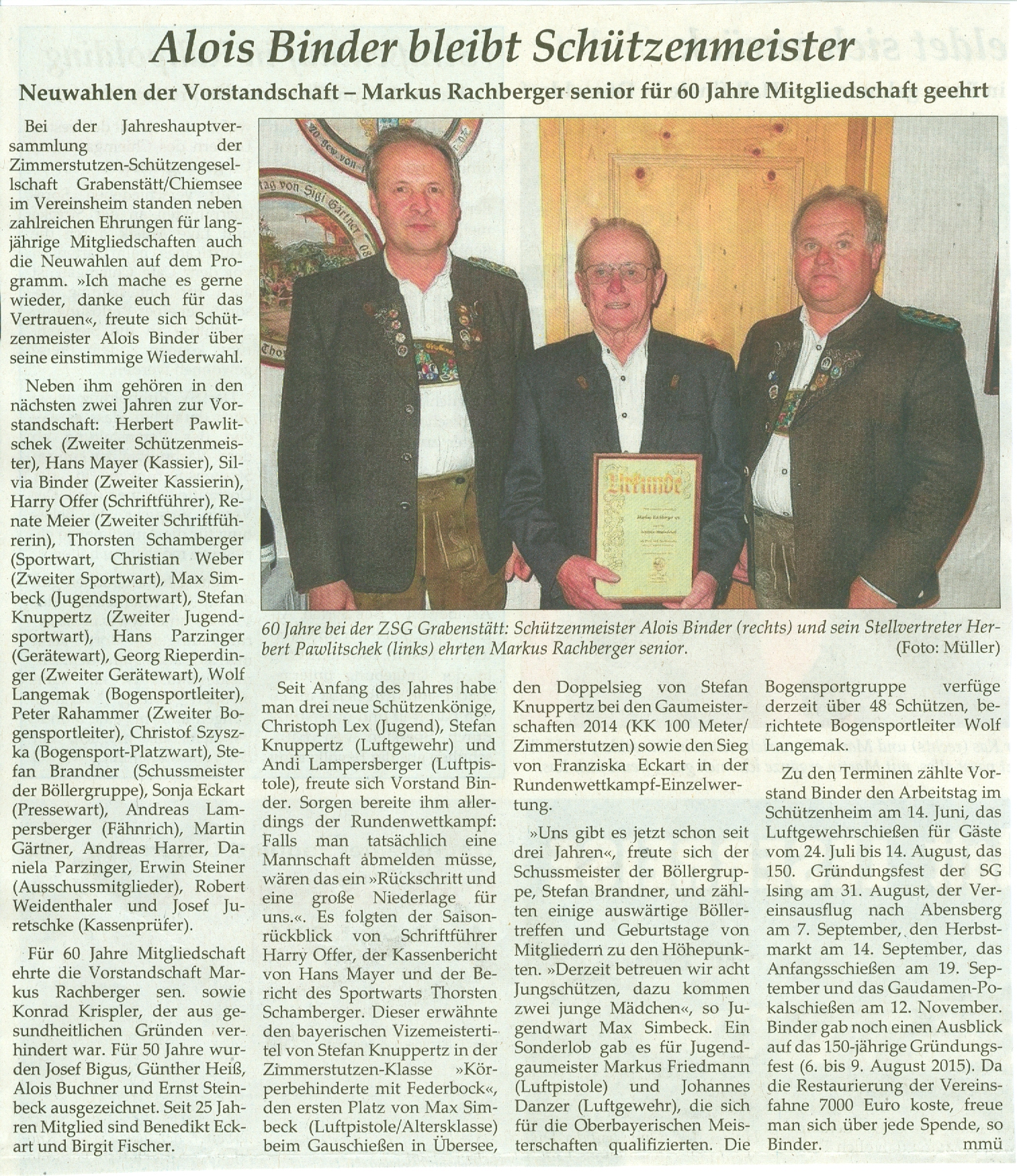 v.l. Schützenmeister Alois Binder, Hans
