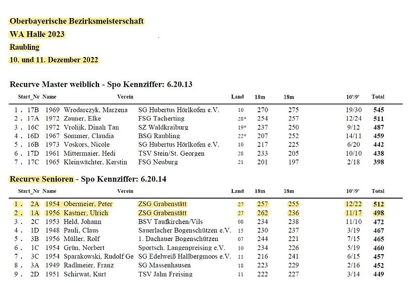 Zu den Obb. Meisterschaften haben sich folgende Schützen der ZSG