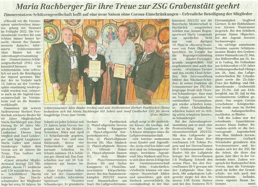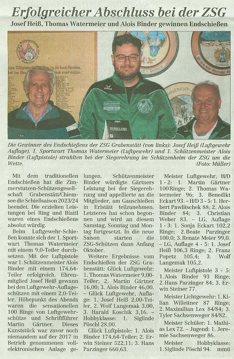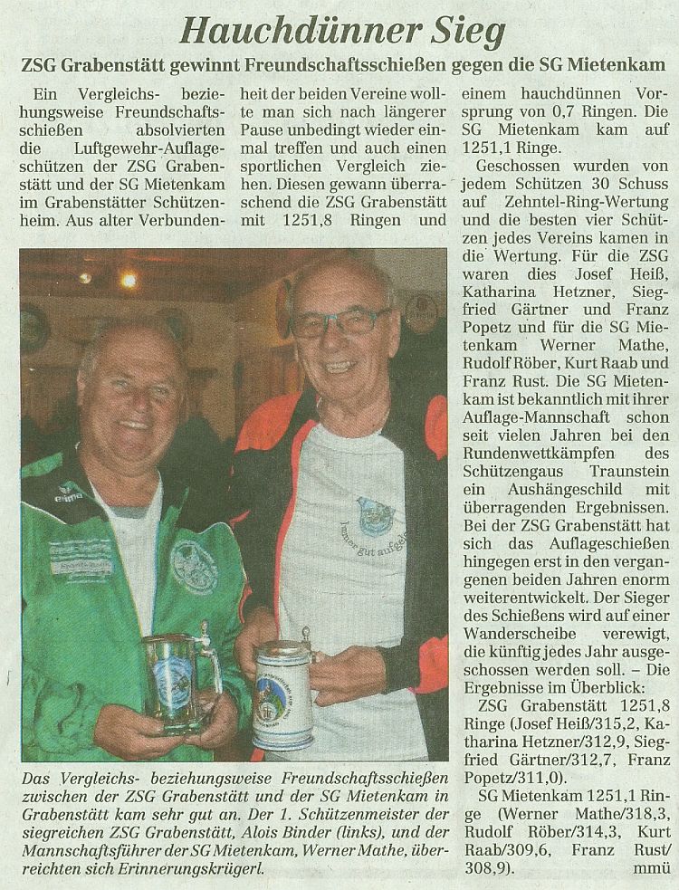 der ZSG beim Gauschießen im Alzgau. In der Mannschaftswertung belegten