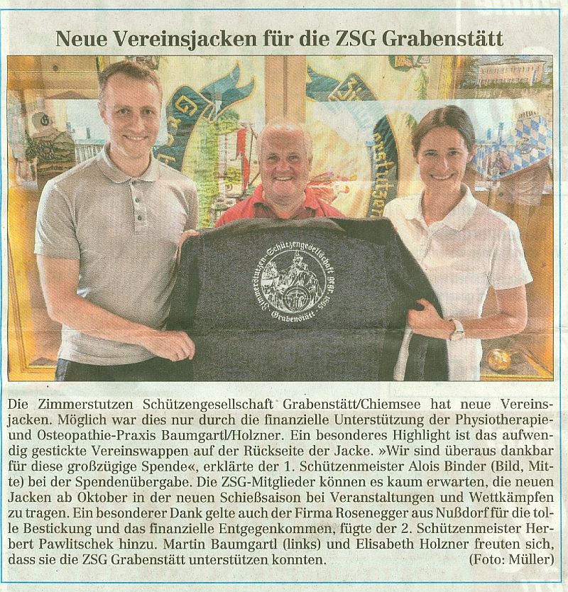 Neue Vereinsjacken - Bericht im