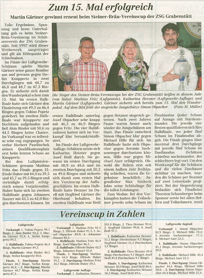 Steiner Bräu Vereinscup 2026 - Bericht im