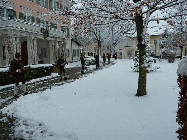 3 Schußsalven ab. Anschließend wurden wir mit narrisch gutem