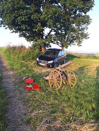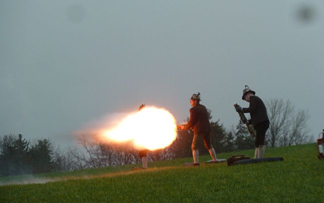 Schuß mit Standböller und Kanone unter der Leitung des 2.