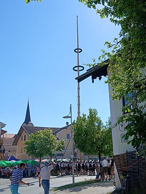 wir mit einem lautstarken Doppelschlag dass der Maibaum steht.